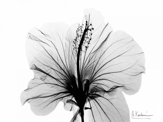 Hibiscus in BandW White Modern Wood Framed Art Print with Double Matting by Koetsier, Albert