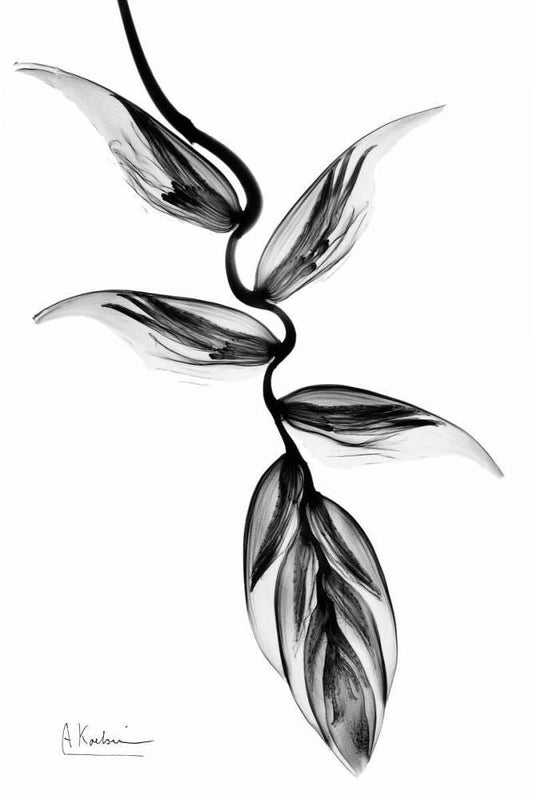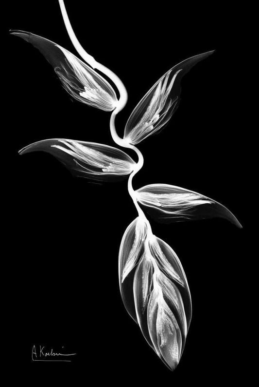 Heliconia BandW on Black White Modern Wood Framed Art Print with Double Matting by Koetsier, Albert