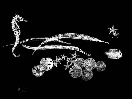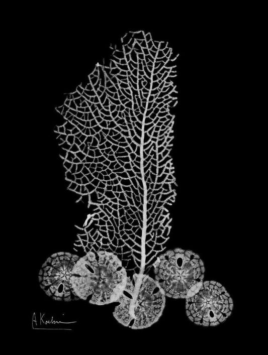 Sea Fan and Sand Dollar on Black White Modern Wood Framed Art Print with Double Matting by Koetsier, Albert