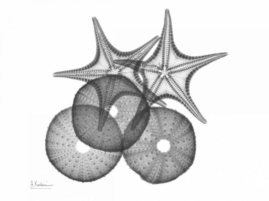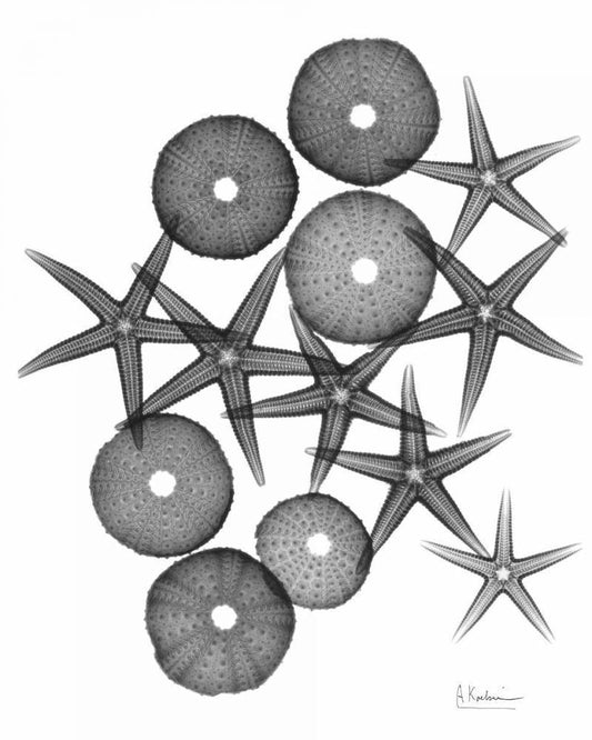 Sea Urchin and Starfish White Modern Wood Framed Art Print with Double Matting by Koetsier, Albert
