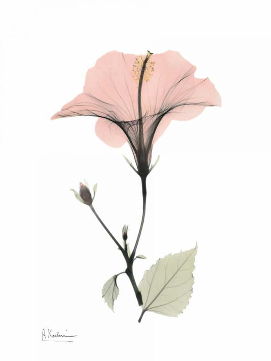 Pink Hibiscus White Modern Wood Framed Art Print with Double Matting by Koetsier, Albert