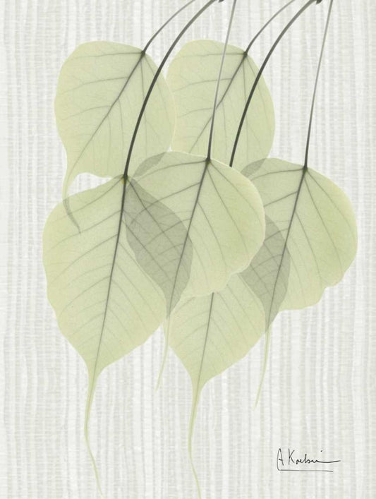 Bo Tree Leaves in Green on Stripes White Modern Wood Framed Art Print with Double Matting by Koetsier, Albert