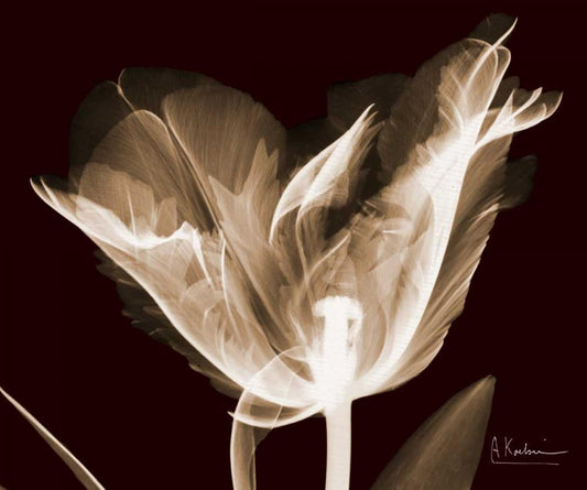 Single Tulip Brown on Red White Modern Wood Framed Art Print with Double Matting by Koetsier, Albert