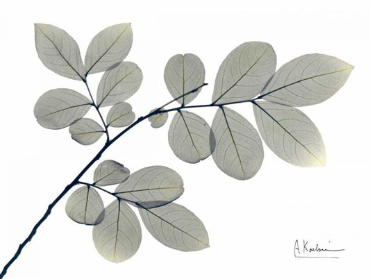 Eucalyptus Leaves in Green White Modern Wood Framed Art Print with Double Matting by Koetsier, Albert