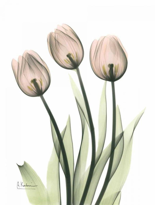 Three Pale Pink Tulips White Modern Wood Framed Art Print with Double Matting by Koetsier, Albert