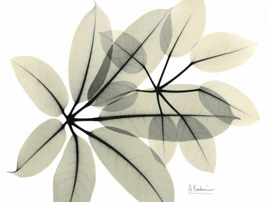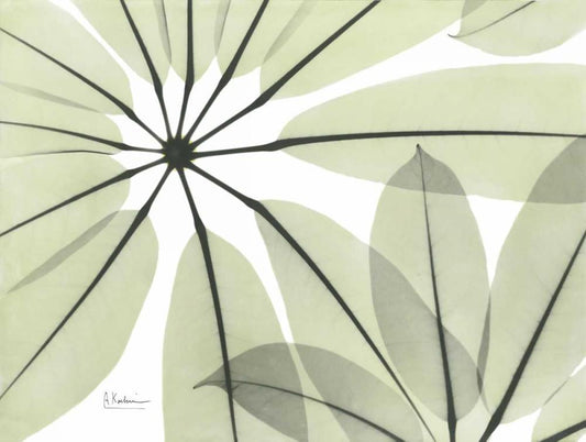 Brassaia Close Up in Green White Modern Wood Framed Art Print with Double Matting by Koetsier, Albert
