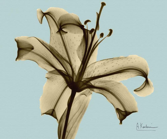 Single Lily Brown on Blue White Modern Wood Framed Art Print with Double Matting by Koetsier, Albert