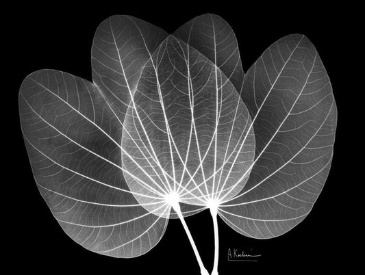 Triple Leaf Close Up on Black 2 White Modern Wood Framed Art Print with Double Matting by Koetsier, Albert