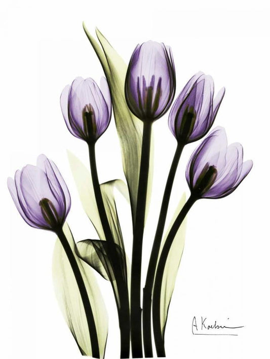 Tulips H37 White Modern Wood Framed Art Print with Double Matting by Koetsier, Albert