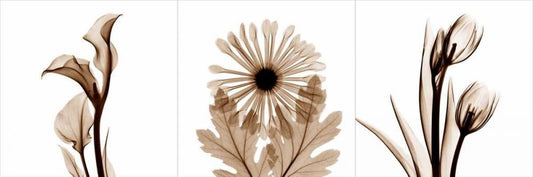 Sepia Floral Tryp Tych IV White Modern Wood Framed Art Print with Double Matting by Koetsier, Albert