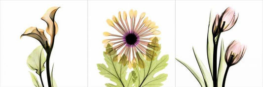 Multi-color Floral Tryp Tych I White Modern Wood Framed Art Print with Double Matting by Koetsier, Albert