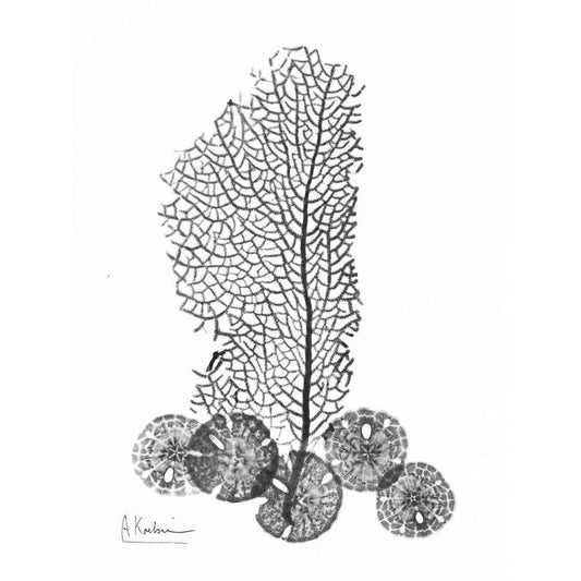 Sea Fan and Sand Dollar in BandW Gold Ornate Wood Framed Art Print with Double Matting by Koetsier, Albert