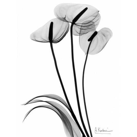 Anthurium Triple in BandW Gold Ornate Wood Framed Art Print with Double Matting by Koetsier, Albert
