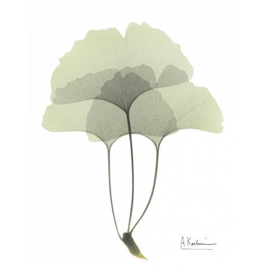 Gingko in Pale Green 3 Gold Ornate Wood Framed Art Print with Double Matting by Koetsier, Albert