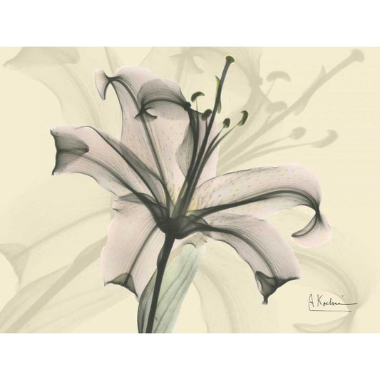 Lily in Pink on Beige Gold Ornate Wood Framed Art Print with Double Matting by Koetsier, Albert