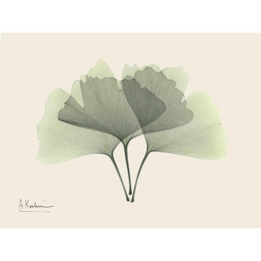 Ginkgo on Beige Gold Ornate Wood Framed Art Print with Double Matting by Koetsier, Albert