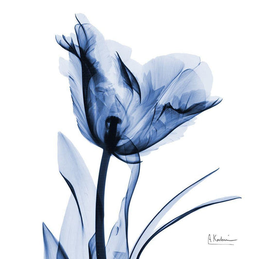 Indigo Softened Tulip White Modern Wood Framed Art Print with Double Matting by Koetsier, Albert