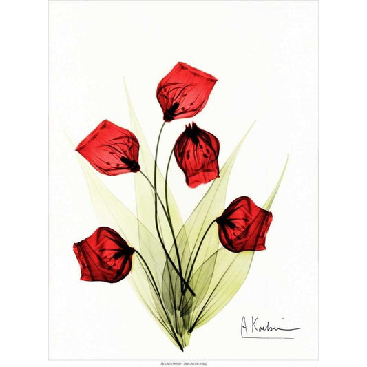 Sandersonia in Red 2 Gold Ornate Wood Framed Art Print with Double Matting by Koetsier, Albert