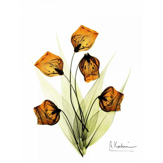 Sandersonia in Gold Gold Ornate Wood Framed Art Print with Double Matting by Koetsier, Albert