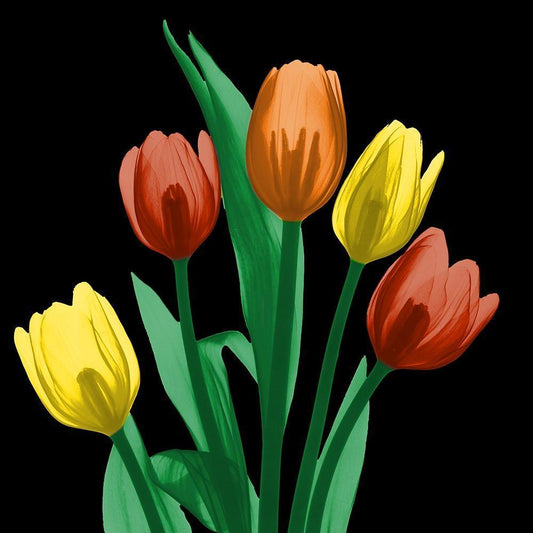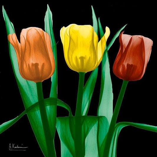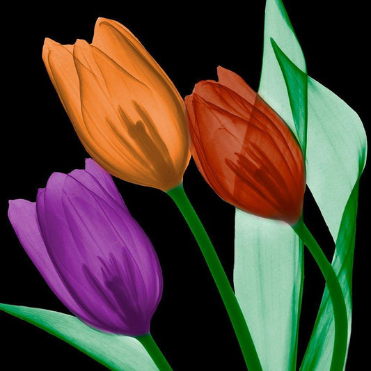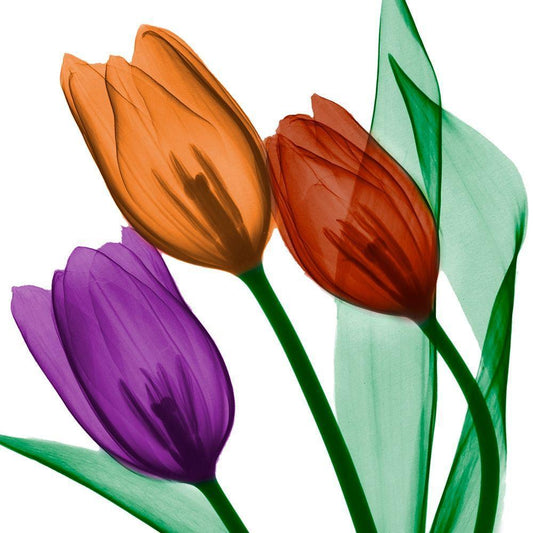 Shiny Jewel Tulips 2 White Modern Wood Framed Art Print with Double Matting by Koetsier, Albert