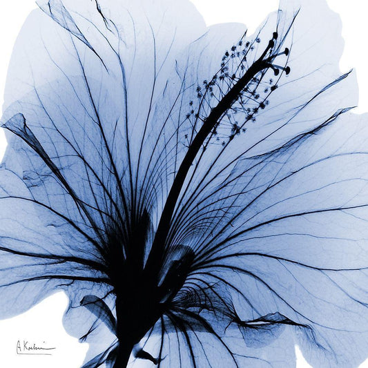 Indigo Hibiscus Turn White Modern Wood Framed Art Print with Double Matting by Koetsier, Albert