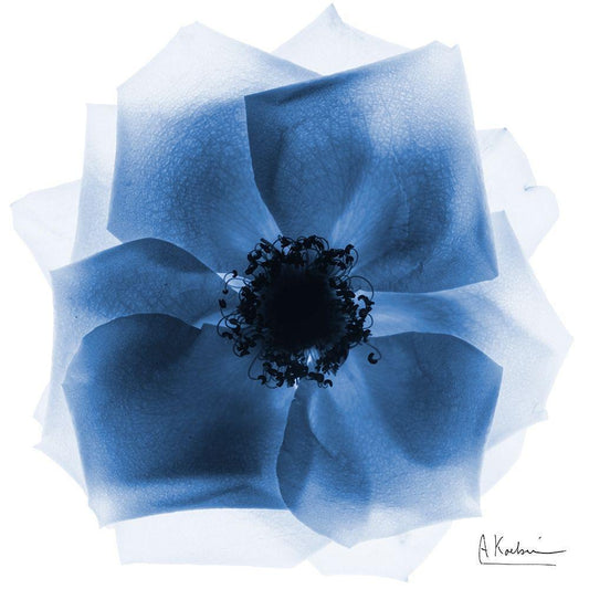 Indigo Rose Petals 1 White Modern Wood Framed Art Print with Double Matting by Koetsier, Albert
