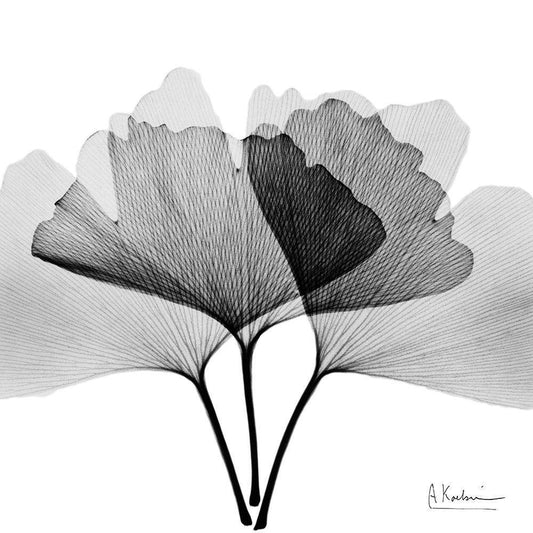 Inverted Ginko 5 White Modern Wood Framed Art Print with Double Matting by Koetsier, Albert