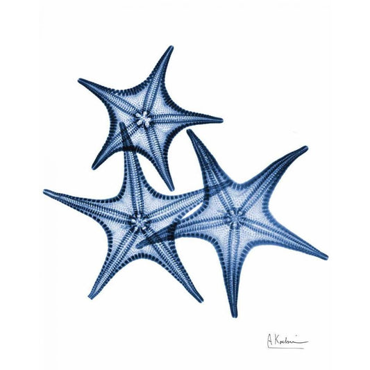 Blue Trio Starfish Gold Ornate Wood Framed Art Print with Double Matting by Koetsier, Albert