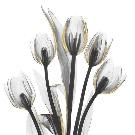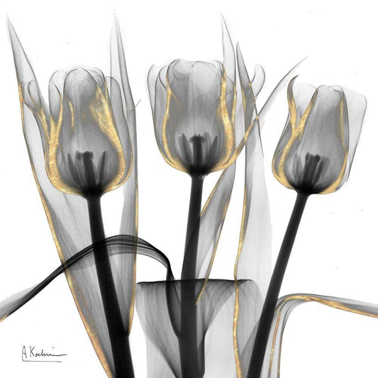 Gold Embellished Tulips 1 White Modern Wood Framed Art Print with Double Matting by Koetsier, Albert