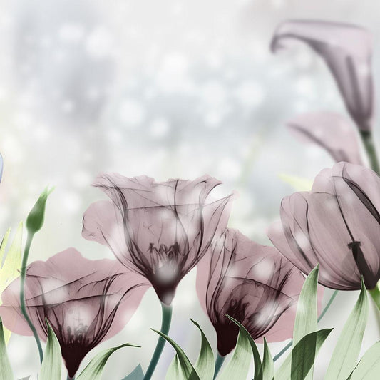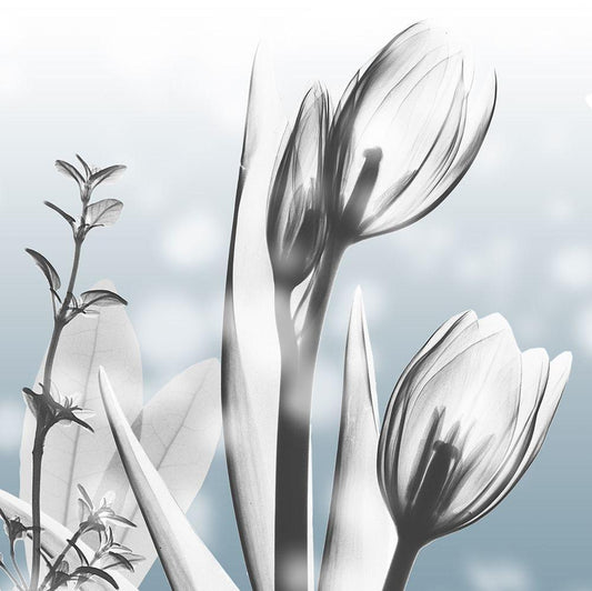 Awakening Tulips White Modern Wood Framed Art Print with Double Matting by Koetsier, Albert