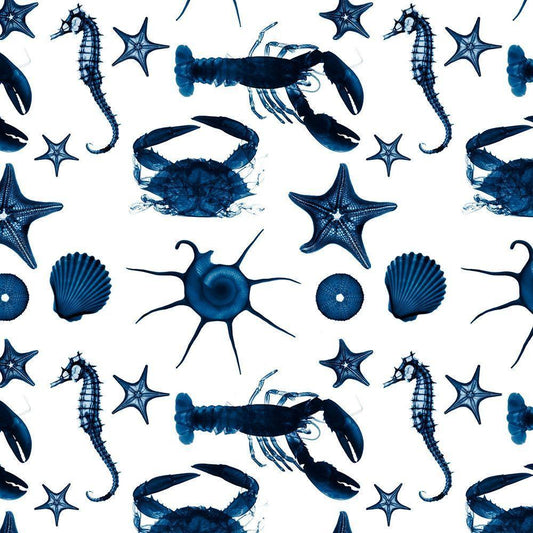 Indigo Starfish and Sand Dollar White Modern Wood Framed Art Print with Double Matting by Koetsier, Albert