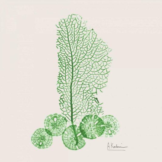 Emerald Sea Fan and Sand Dollar White Modern Wood Framed Art Print with Double Matting by Koetsier, Albert