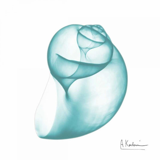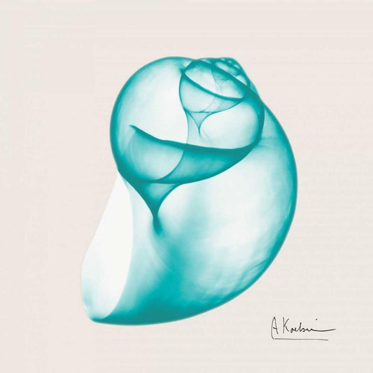 Turquoise Water Snail White Modern Wood Framed Art Print with Double Matting by Koetsier, Albert