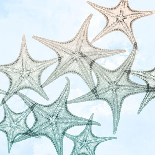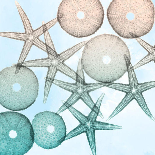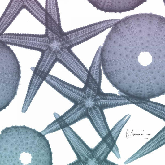 Cerulean Starfish and Sand Dollar 2 White Modern Wood Framed Art Print with Double Matting by Koetsier, Albert