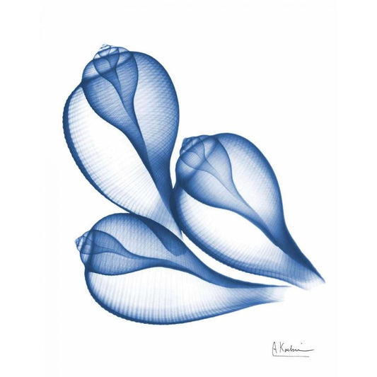 Blue Trio Conch Black Modern Wood Framed Art Print by Koetsier, Albert