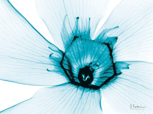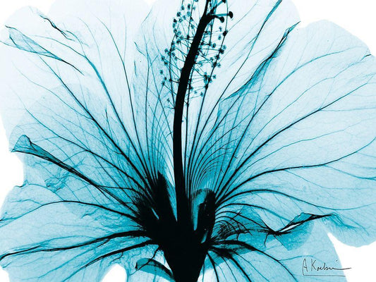 Aqua Hibiscus White Modern Wood Framed Art Print with Double Matting by Koetsier, Albert