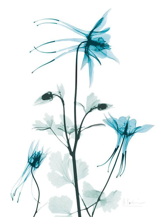 Aqua Columbine White Modern Wood Framed Art Print with Double Matting by Koetsier, Albert