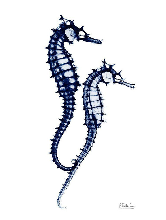 Indigo Horse Race 2 White Modern Wood Framed Art Print with Double Matting by Koetsier, Albert
