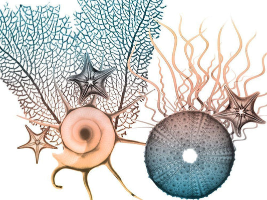 Blue Hue Starfish 1 White Modern Wood Framed Art Print with Double Matting by Koetsier, Albert