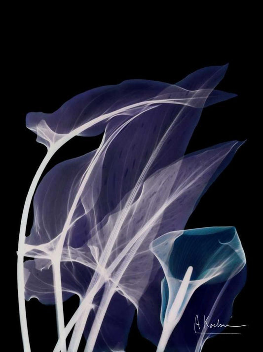Blue Purple Calla White Modern Wood Framed Art Print with Double Matting by Koetsier, Albert