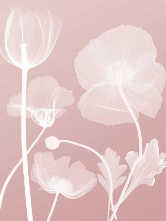 Pink Flora 5 White Modern Wood Framed Art Print with Double Matting by Koetsier, Albert