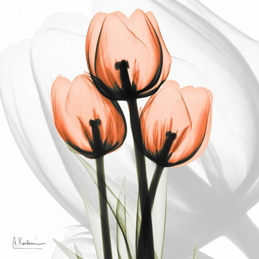 Orange tulips Black Ornate Wood Framed Art Print with Double Matting by Koetsier, Albert
