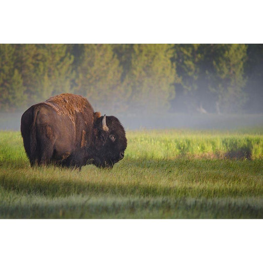 Bison in Morning Light Gold Ornate Wood Framed Art Print with Double Matting by Biswas, Sandipan