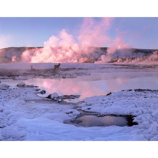 Elk in snow-Lower Geyser Basin-Yellowstone National Park-Wyoming Gold Ornate Wood Framed Art Print with Double Matting by Fitzharris, Tim