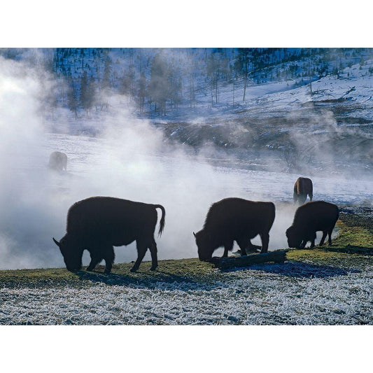 Bison at a Hot Spring-Yellowstone National Park-Wyoming Gold Ornate Wood Framed Art Print with Double Matting by Fitzharris, Tim