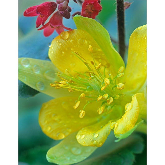 Yellow Columbine and Coral Bells Gold Ornate Wood Framed Art Print with Double Matting by Fitzharris, Tim
