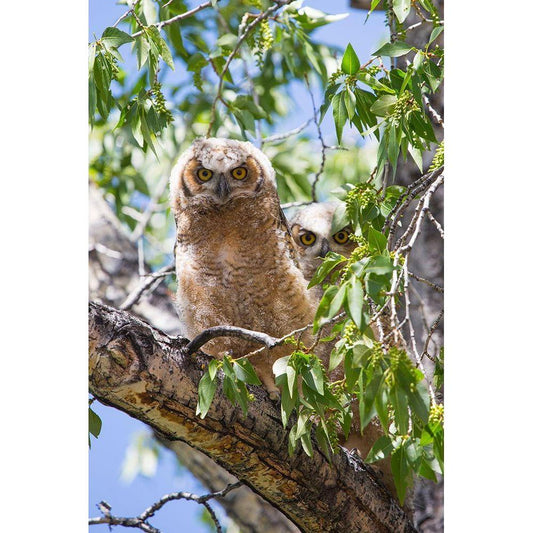 Great Horned Owlets, Mammoth Hot Springs, Yellowstone National Park Gold Ornate Wood Framed Art Print with Double Matting by The Yellowstone Collection