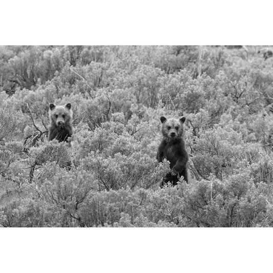 Grizzly Cubs near Fishing Bridge, Yellowstone National Park Gold Ornate Wood Framed Art Print with Double Matting by Peaco, Jim