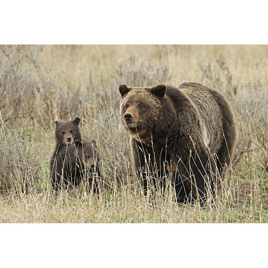 Grizzly Sow and Cubs near Fishing Bridge, Yellowstone National Park Gold Ornate Wood Framed Art Print with Double Matting by Peaco, Jim