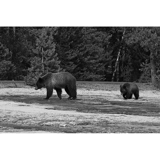 Grizzly Sow and Yearling near Daisy Geyser, Yellowstone National Park Gold Ornate Wood Framed Art Print with Double Matting by Peaco, Jim